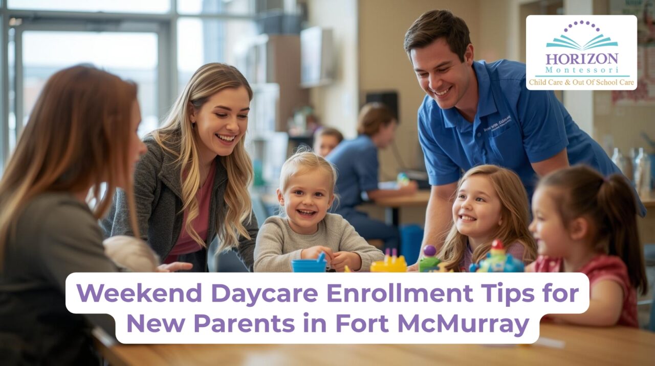 The right choice of daycare for the weekend is notorious among parents of infants; it doesn’t necessarily mean the parents are dumbfounded. Armed with the tips given, you could confidently select a center, according to the child or family schedule, in line with the child’s well-being to ensure their sanctity. Horizon Montessori Childcare and Out of School Care is pleased to assist families seeking authentic, high-quality daycare in Fort McMurray with flexible programs for weekdays, weekends, and Montessori.